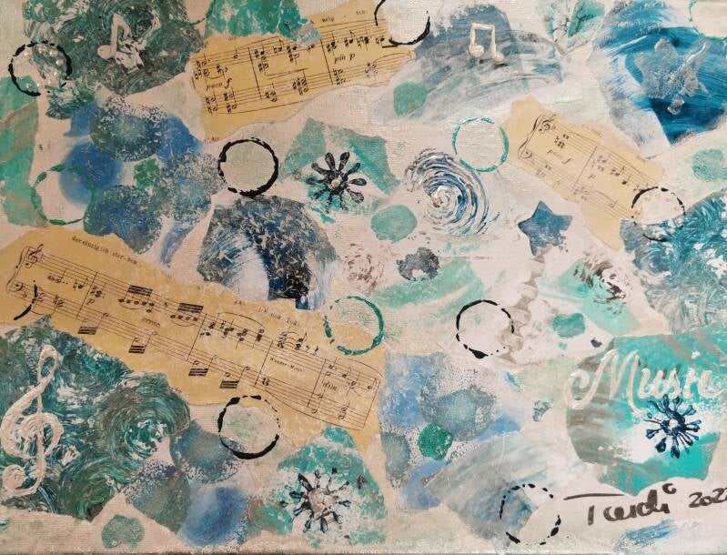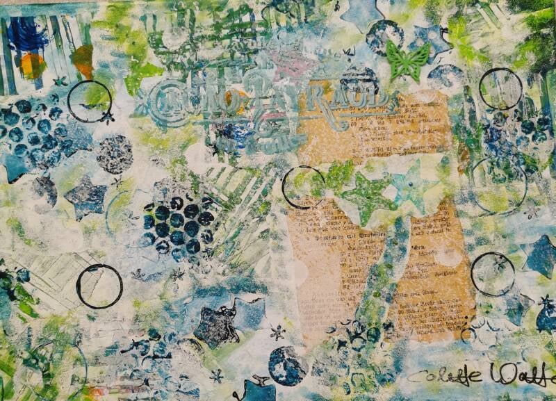 Kursinhalt: Herstellen von eigenem Material, Erschaffen eines Mixedmedia Bildes.