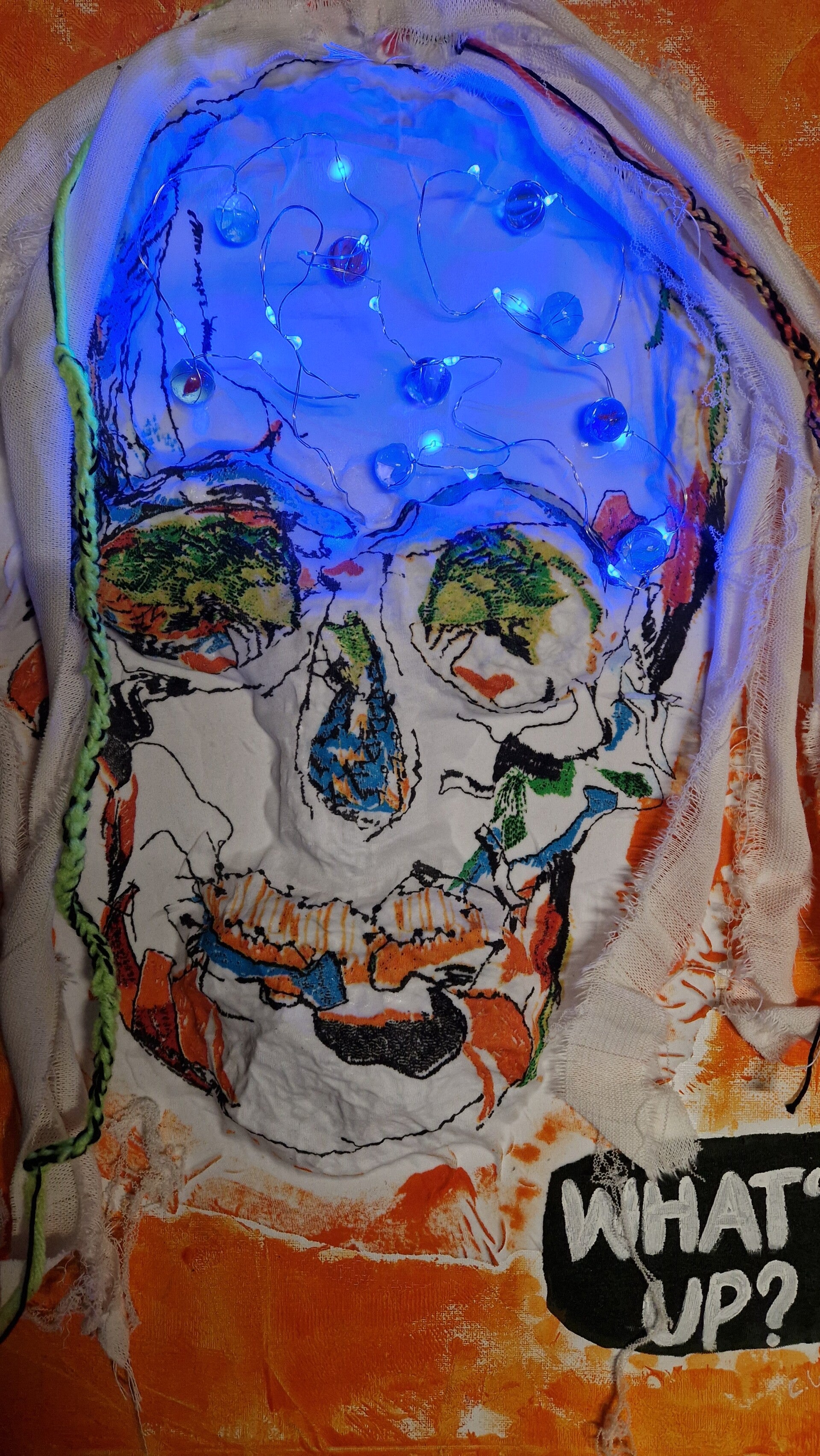 Mixedmedia mit Lichterkette und auswechselbaren Baterien